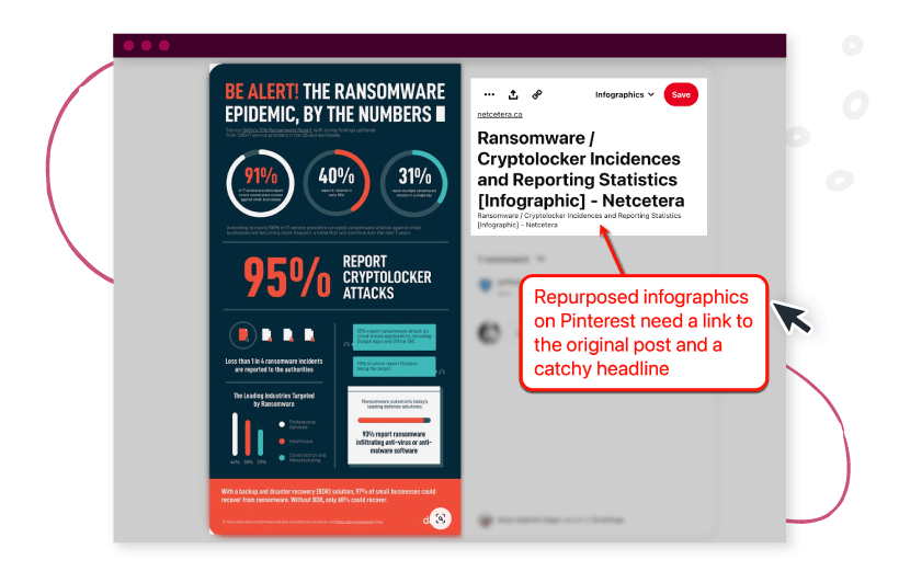 Infographics are huge on Pinterest, which is why a lot of brands share repurposed infographics on the platform. Apart from the infographic, the key ingredients to this strategy are a captivating headline and a link back to the original post.