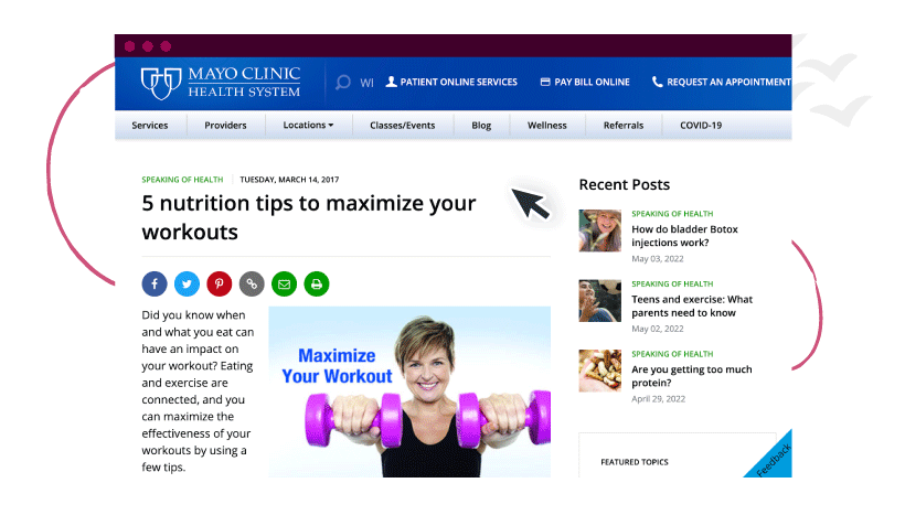 Mayo Clinic is a go-to source of medical information for people who aim to self-diagnose all sorts of symptoms. The blog also successfully solidified the brand’s authority when it comes to practical health advice.Check out the Mayo Clinic blog for medical content writing samples and inspiration.