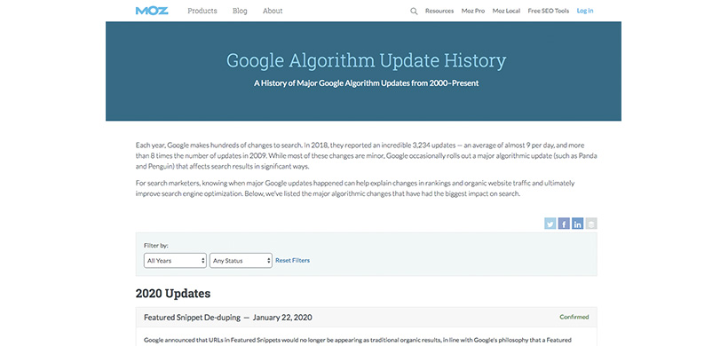 Ladder content can also be a permanent page on your website, like this Google Algorithm Update History page from Moz. Every year Google makes hundreds of changes to search.