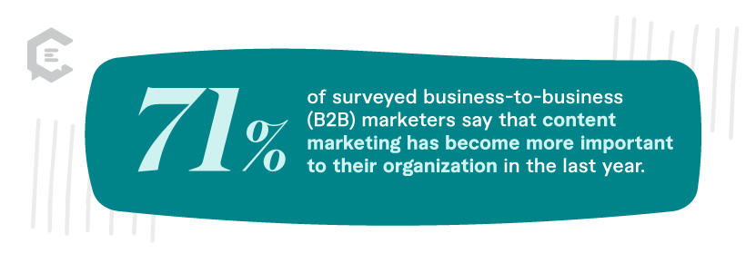 According to a 2023 Content Marketing Institute research report, 71 percent of B2B marketers say that content marketing has become more critical to their organization in the last year. However, large companies must contend with complex organizational structures and buyer committees.