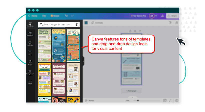 You can also use graphic design tools like Canva to create data-driven visuals like charts, lists, timelines, and full-on infographics.
