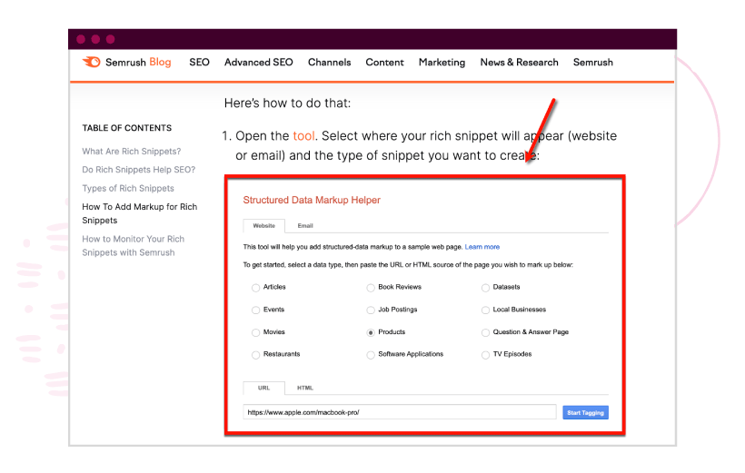 Authoritative sites like Semrush use many screenshots in their how-to guides to help readers turn information into action.