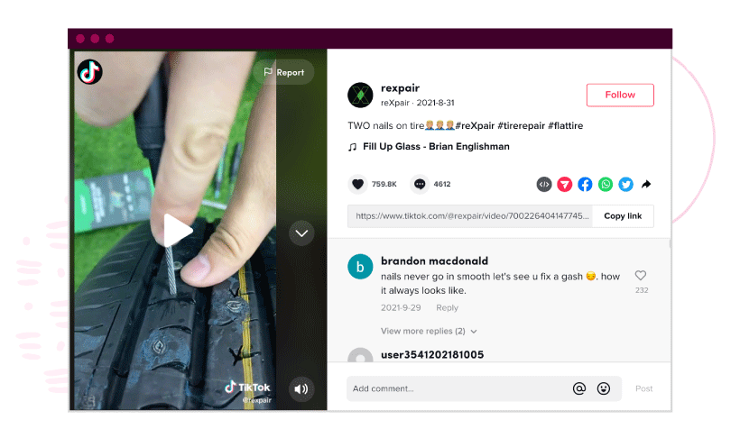 Here’s a popular example of a short-form video from REXPAIR’s TikTok page:
