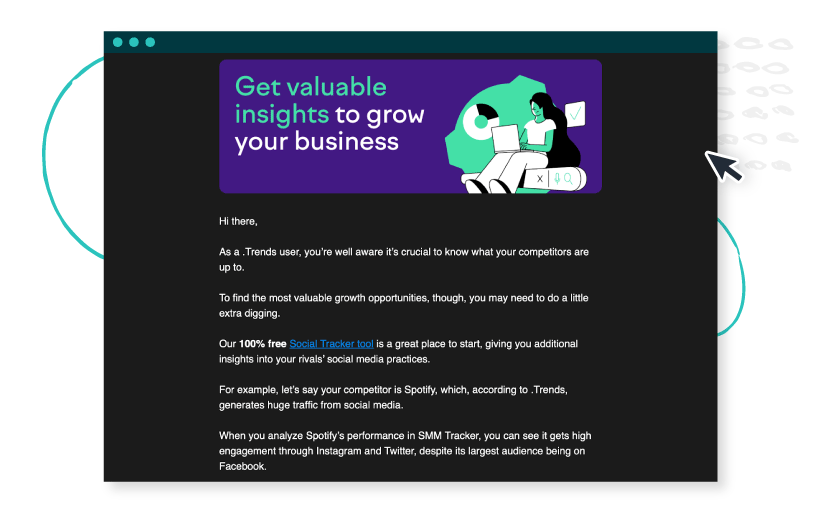 Emails are easy to create, impactful, and deliverable to a specific group of engaged audiences. They can also be automated with the right emailmarketing tools — streamlining user interactions while you focus on other aspects of your marketing.