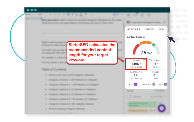 Answering these questions helps you determine if you need long-form content to outrank competitors — or if short-form content will be enough. Alternatively, use a content optimization tool like SurferSEO to get instant content length recommendations.