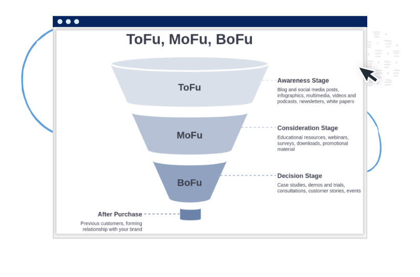 Top-of-the-funnel content is the first stage of the customer journey. TOFU marketing content is generally educational, designed to introduce your product or service to potential customers and provide basic information.
