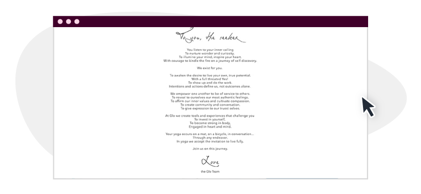 Glo has an entire manifesto that incorporates its mission and vision statements…