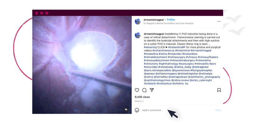 Procedure footage like Dr. Nagpal’s Instagram post is a good example of engaging short-form video content. In addition to the zoomed-in video, the post includes a detailed description of the video along with a list of relevant hashtags.