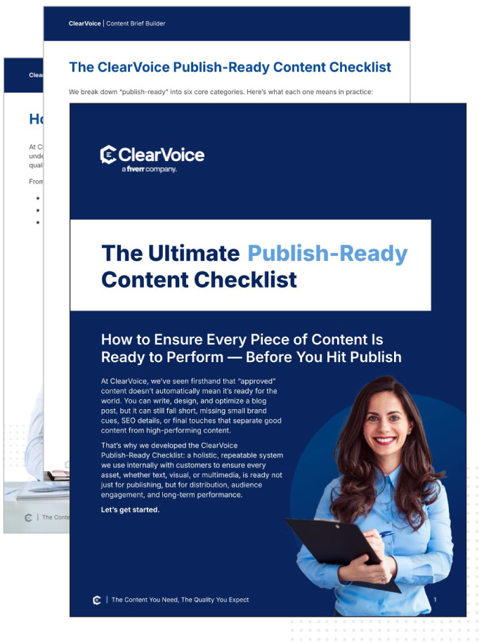 That’s why ClearVoice creating the Publish-Ready Content Checklist: a repeatable system we use internally and with customers to ensure every asset — blog post to landing page and social copy — is ready for distribution, engagement, and long-term success.