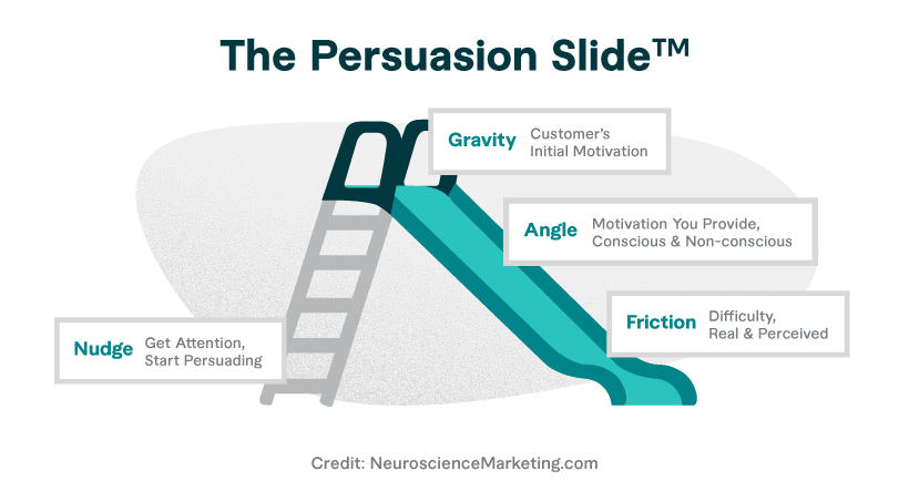 So what tactics push people down the persuasion slide, and can you incorporate them into your content?